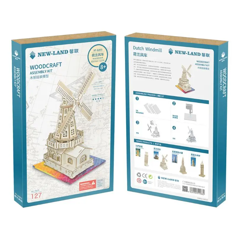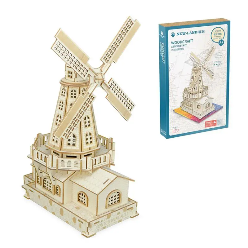 HOT SALE 1 Set Dutch Windmill 3D Wooden Model Children Three-dimensional Puzzle Boys Girls Educational Toys