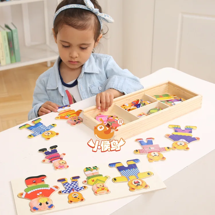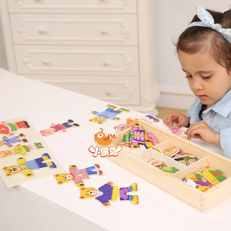 Children Four Bear Huanyi Wear Clothes Toy Wooden Puzzle Baby Early Childhood Educational Force Han