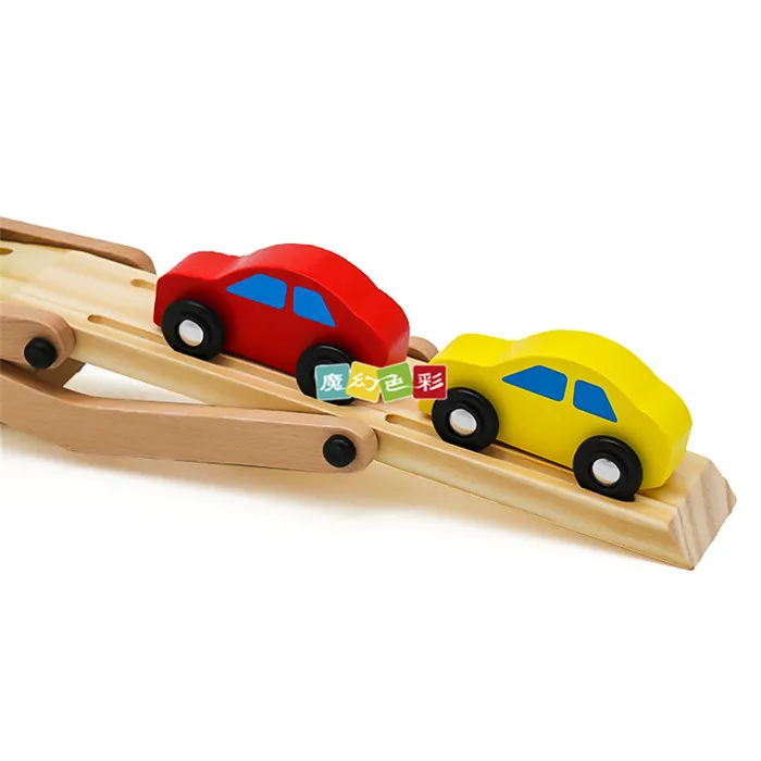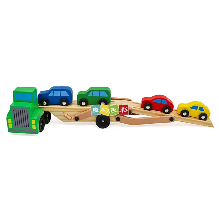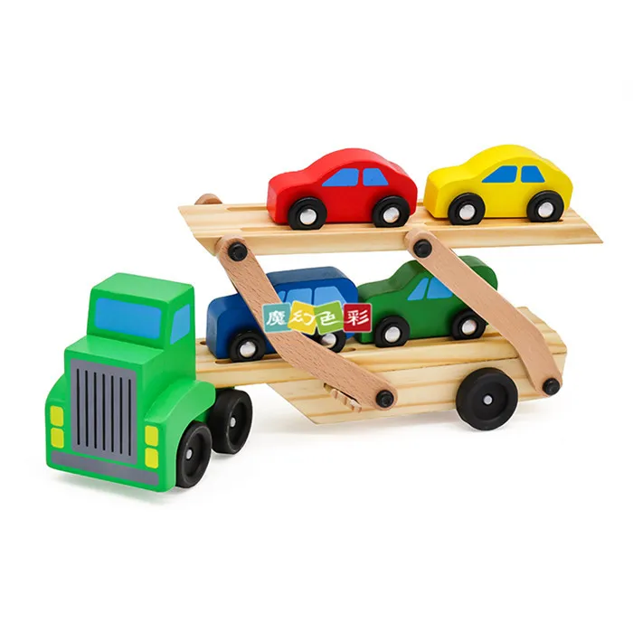 BEST Children Wooden Toys Puzzle Tractor Manual Intelligence Car Pull Toys Double Layer Car Kids Early E