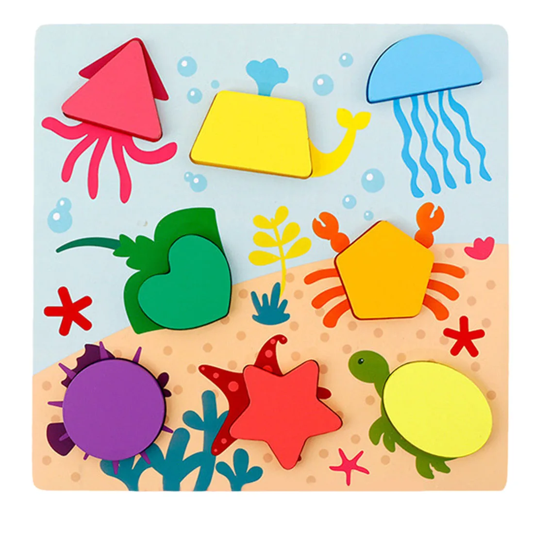 HIGH QUALITY Wooden Chunky Jigsaw Educational Learning Toy Cognitive Puzzle Board for Children Kids Color & Shap