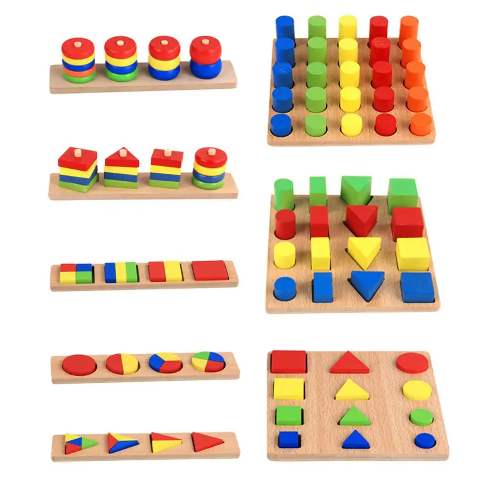ORIGINAL 8PCS/Set Montessori Toy Kids Teaching Aids Early Education Toys Wood Geometric Puzzles Parent-Child