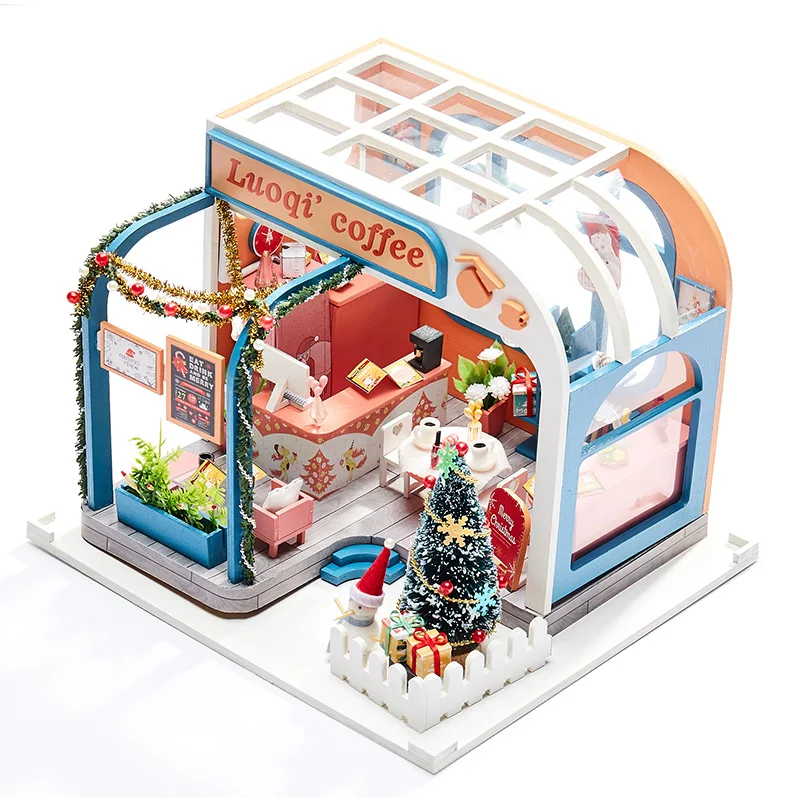 DIY Cabin Assembled Puzzle Ornaments Cafe Model DIY Desktop Decoration New Year'S Gift Decor Wooden