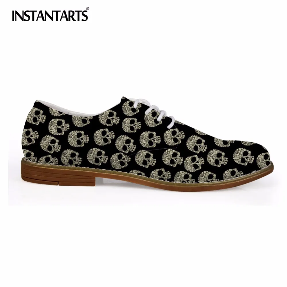 INSTANTARTS Brand Leather Oxford Shoes For Men Business Dress Flats Shoes Casual Skull Puzzle Print