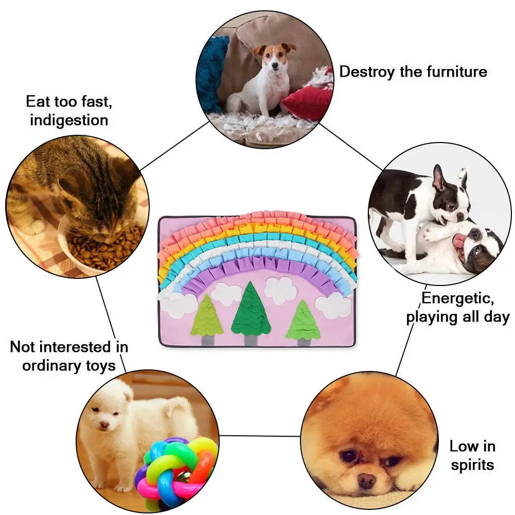 Pet Dog Sniffing Mat Find Food Chew Training Blanket Play Toys Dog Mat For Relieve Stress Rainbow P