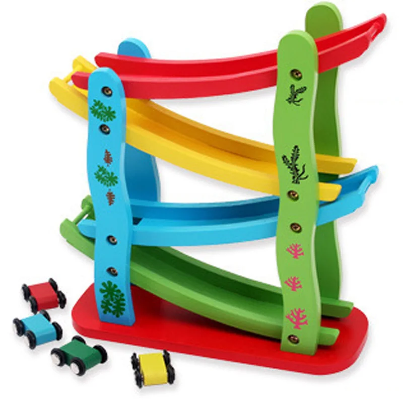 Wooden Children's Toy Roller Coaster Four-story Glider Track Slide Car Puzzle Manual Brain Preschoo