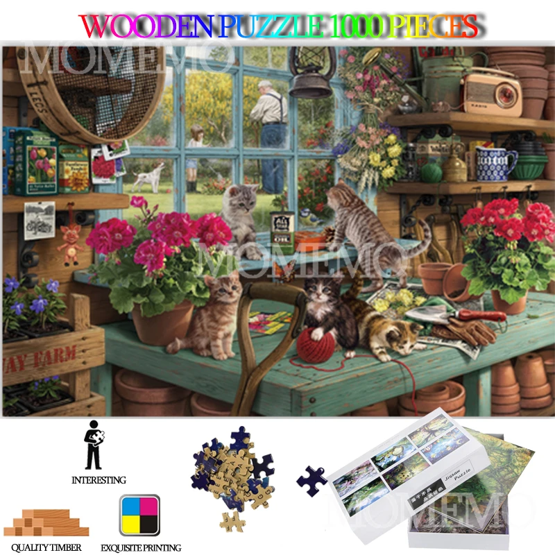 Curious Cat Wooden Puzzle 1000 Pieces for Adults Fine Painting Jigsaw Puzzle Toys Teens Kids Educat