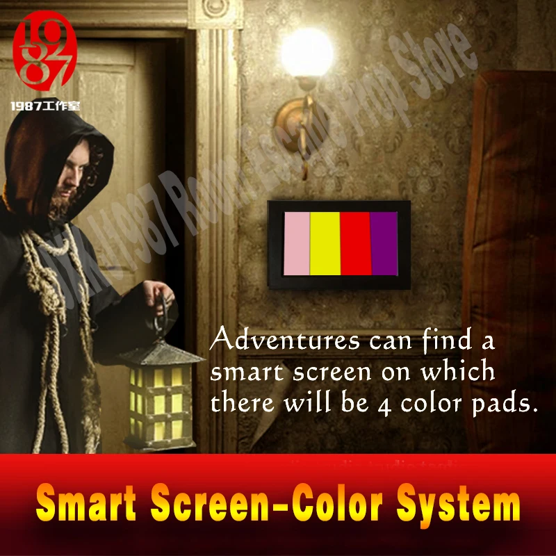 Reality room escape prop color puzzle app smart screen adjust color pad to right color to unlock es