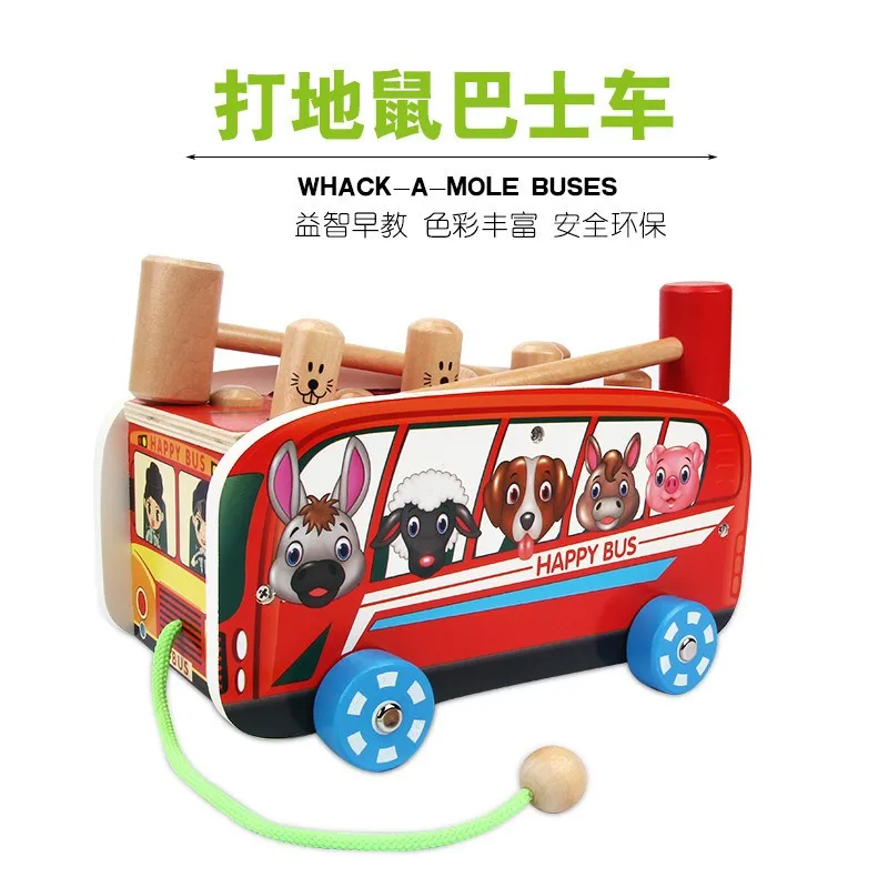 Wooden blocks puzzle children early education animal cognition hamster bus small trailer infant dra